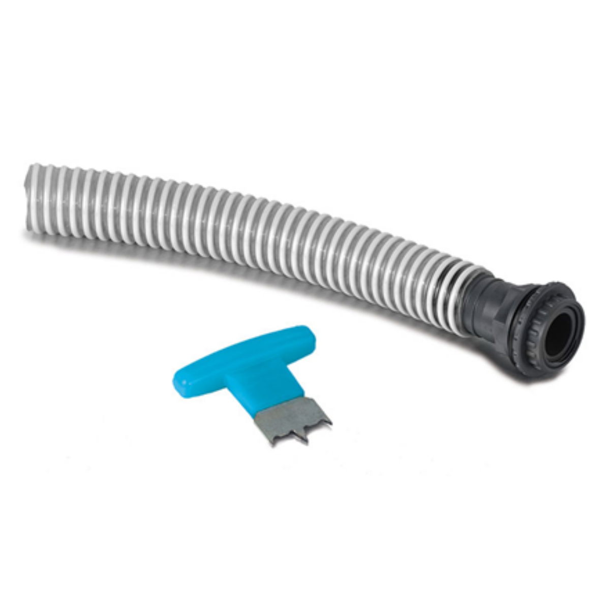 A lyukvágóval könnyen kivágható az esővízgyűjtő bevezetőnyílása. 25 cm Spiráltömlő Ø 25 mm 1 x ¾“-os tartályfal átmenet és kézi fúró 25 mm 25 cm Spiráltömlő Ø 32 mm 1 x 1“ Tartályfal átmenet és kézifúró 32 mm