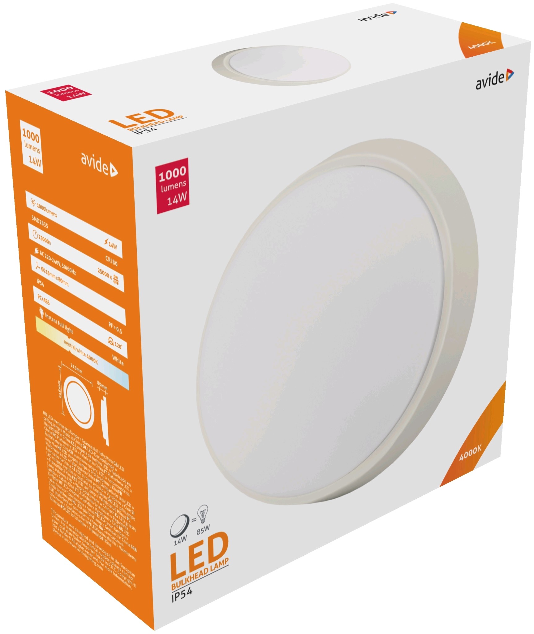 Az Avide IP54-ös Mennyezeti Lámpák műanyag házzal, 14W-os teljesítménnyel, természetes fehér (NW) világítási hőmérséklettel érhetők el, kerek/ovális formákban és fekete/fehér színekben.