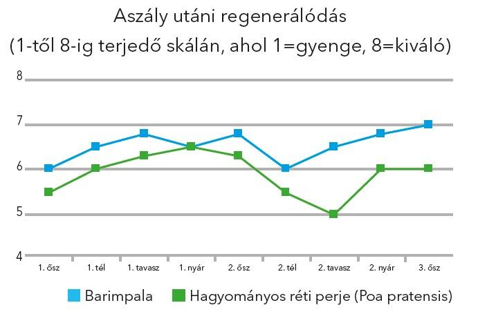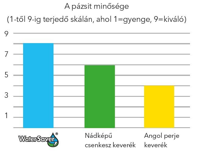 Az alábbi grafikon az ősszel vetett Water Saver minőségét hasonlítja össze egy hagyományos nádképű csenkesz keverék és egy csak angol perjét tartalmazó keverék minőségével. Az öntözési szint az evapotranszspiráció (ET) 50%-a volt. A méréseket két éves időszak alatt végezték.