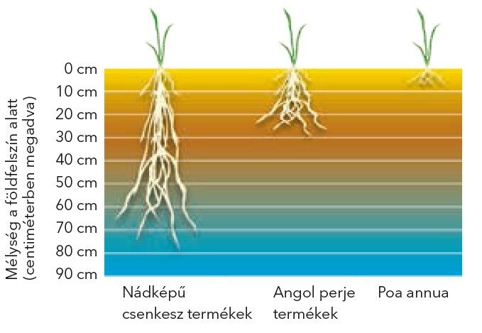 Mély gyökérzetének köszönhetően a Water Saver a talaj mélyebb rétegeiből veszi fel a vizet. A hagyományos fűfajták sekélyebben gyökereznek és így a vizet a talaj felsőbb rétegeiből (maximum 10 – 15 centiméter mélyről) tudják felvenni. Az ilyen növények hamar elpusztulnak szárazságban, jóval az aszály tetőzése előtt. A Water Saver keverékben található nádképű csenkesz gyökérzete akár 60 centiméteres mélységig is lehatolhat, a vizet és a tápanyagokat (cukrok) pedig a gyökerében tárolja, így át tudja vészelni az esetleges száraz időszakokat is. A réti perje biztosítja a vízszintes irányú növekedést, így kiterjedt, földfelszín alatti tarack- és gyökérhálózat jön létre.