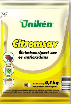 A citromsav a bor savtartalmának emelésére és a fémes zavarosodások megelõzésére alkalmas. Adagolása, kisebb savkorrekciók végrehajtását teszi lehetõvé, a palackozás vagy az elsõ derítés elõtt, mikor már túl késõ a savtartalmat borkõsavval beállítani. A szükséges mennyiségû citromsavat oldja fel tízszeres mennyiségû mustban vagy borban és adja a kezelendõ musthoz vagy borhoz, majd oszlassa szét. A szükséges mennyiséget mindig laborvizsgálat és a bortörvényben megengedettek határozzák meg együttesen.