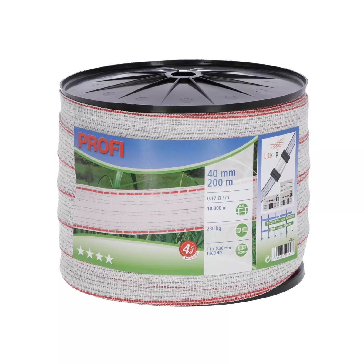 TriCOND fémszálakkal, melyek a szokásos nemesacél vezetőknél akár ötször nagyobb vezetőképességgel rendelkeznek. Rendkívül jó vezetőképesség, jó láthatóság. Különböző szélességekben elérhető. Kifejezetten profi felhasználásra ajánljuk, nagy területek kerítése esetén.