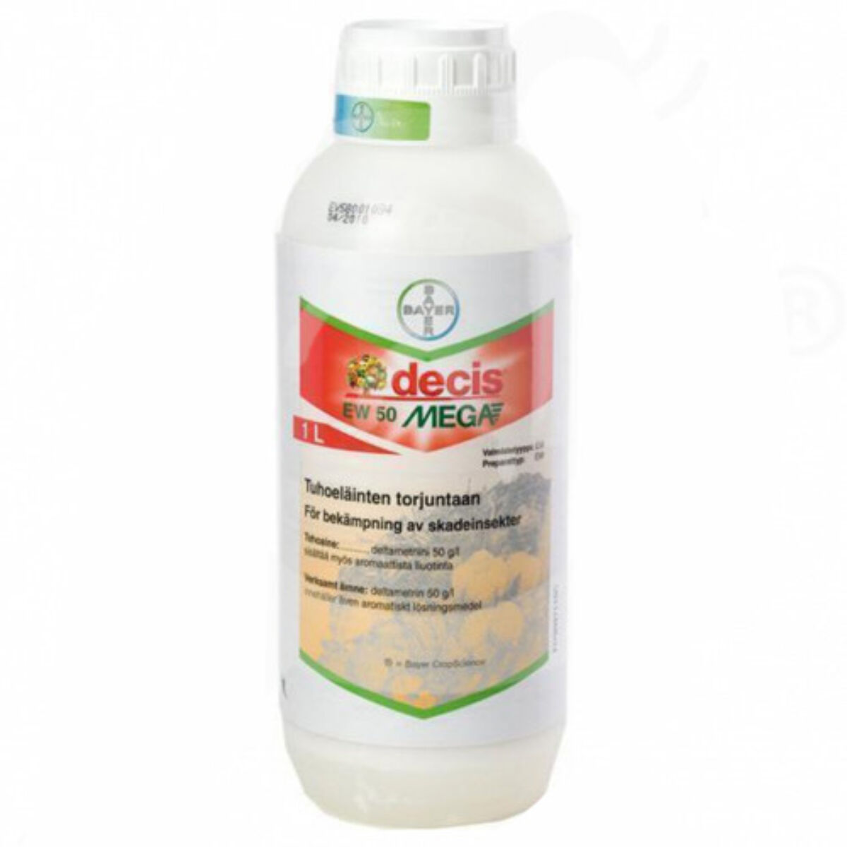 Rovarölő permetezőszer kalászosok, kukorica, napraforgó, repce, alma, körte, szilva, őszi- és kajszibarack, cseresznye, szőlő, zöldségfélék és dísznövények védelmére Hatóanyaga: 50 g/l deltametrin Forgalmazási kategória: II. Dózis: 0,15-0,35 l/ha között, kultúrától és kártevőtől függően Felhasználás A Decis Mega új formulációjú piretroid rovarölő szer. A korszerű formának köszönhetően a Decis megújult, meglepő tulajdonságokat kapott. Kipermetezéskor rögtön szétterül és odaragad a levél felületére. Kisebb a permetezési veszteség, gyorsabb, erőteljesebb lesz a rovarölő hatás.