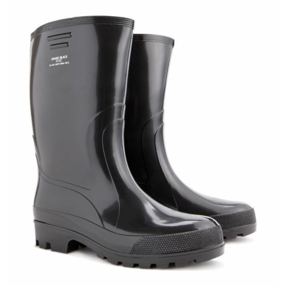 A fekete rövid szárú csizma felső része és talpba fényes PVC-ből készült, a talpat és a feslőrészt egybe öntötték, ezért jóval strapabíróbb, mint más PVC csizmák.