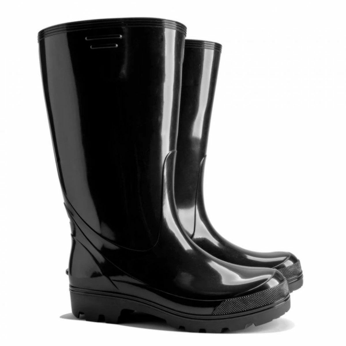 A fekete csizma felső része és talpba fényes PVC-ből készült, a talpat és a feslőrészt egybe öntötték, ezért jóval strapabíróbb, mint más PVC csizmák.
