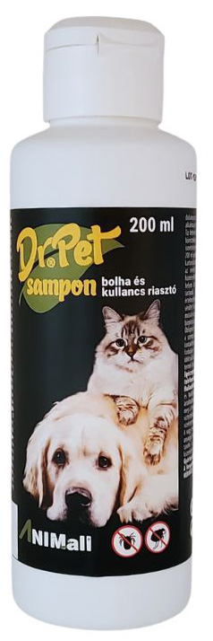 Adagolás alkalmazás: A kutya, vagy a macska testtömegének megfelelő mennyiséget mérjen ki. Egy kupak tartalma 6 ml termék, ami 10 testtömegkg-ra elegendő. Az előzetesen megnedvesített szőrre, bőrre öntse a kimért sampont, (de még jobb, ha kevés vízzel felhigítja), majd habosítva masszírozza be a bőrbe, szőrzetbe, főleg a fülek, a has, a far és a hajlatok tájékán, a bolhák és kullancsok megtelepedése helyén samponozzon bőségesen. Kerülje el, hogy a sampon az állat szemébe, szájába, hallójáratába jusson. Az állatokat a fürdetés előtt itassa meg, nehogy igyanak a fürdető oldatból! A sampont öblítse le langyos vízzel, várja meg míg az állat megszárad, csak utána engedje ki. A termék egyszeri alkalmazással az előírt adagolásban 7 napig elriasztja a bolhákat és kullancsokat. Hatóanyaga: geraniol 0,9g/100g termékben.