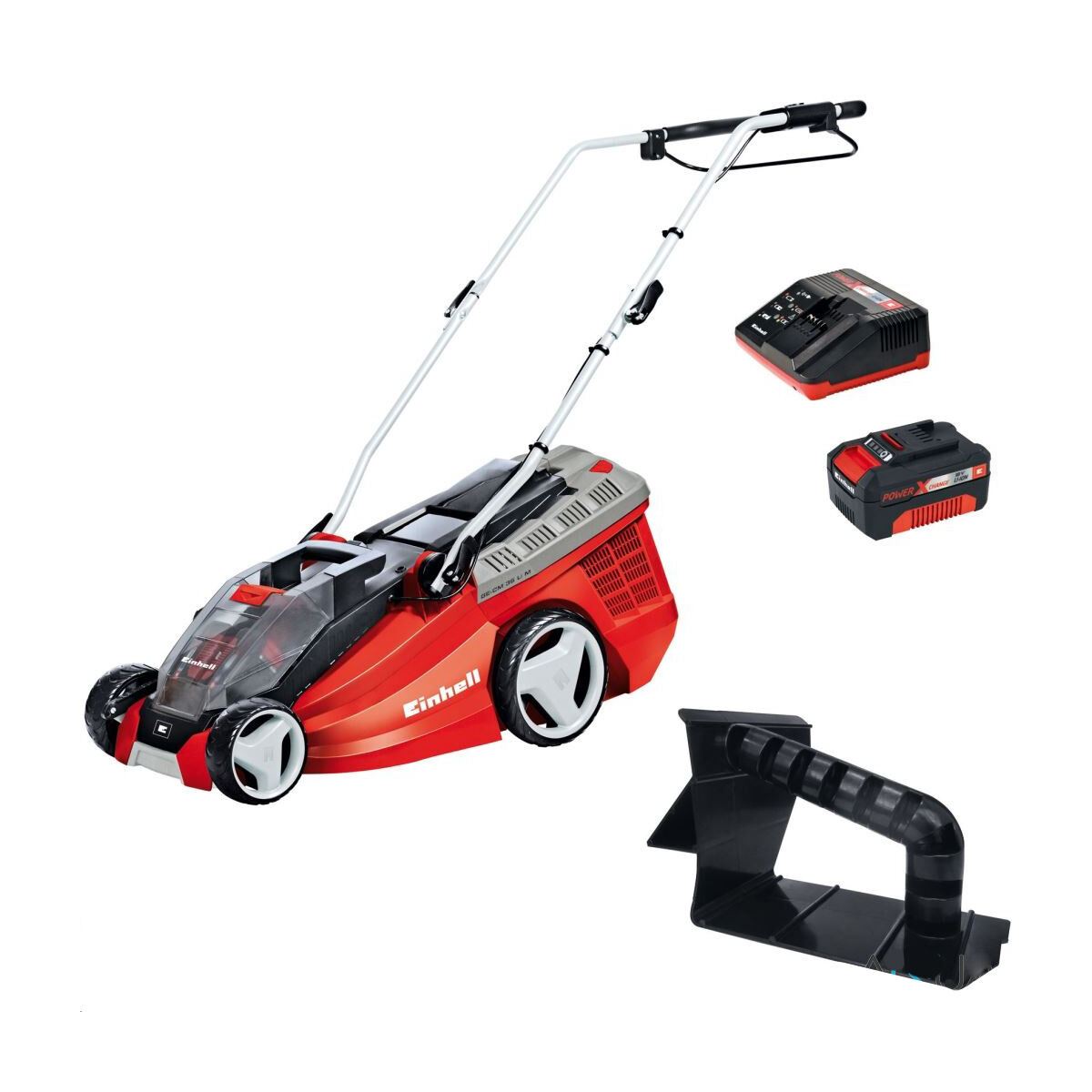 Az Akkumulátorral működő fűnyíró a GE-CM 36 Li M kiváló minőségű, megbízható és rendkívül hatékony eszköz a közepes pázsit vezeték nélküli karbantartásához. Az Einhell új Power X-Change akkumulátor rendszerével a fűnyíró két erős, 18 V, 3,0 Ah-ás akkumulátorral rendelkezik hosszabb műveletek vezeték nélküli végzéséhez. A 6 fokozatú központi vágómagasság állítás lehetővé teszi a vágómagasság egyszerű, egyéni állítását. A GE-CM 36 Li M három fokozatban állítható és behajtható fogószárral rendelkezik. Segítségével bármilyen testmagassághoz tökéletesen beigazítható és helytakarékosan tárolható. A készülék 3 LED-es, akkumulátoros töltésszintjelzővel rendelkezik, amelyről egyetlen pillantással leolvasható az aktuális töltési állapot. Az akkumulátorok a Power X-Change termékcsalád valamennyi készülékéhez használhatók. A szállítmány része a két gyorstöltő készülék. A GE-CM 36 Li M nagyobb méretű hátsó kerekekkel rendelkezik, amelyek nehéz terepen is könnyűvé teszik a munkát. A nagy kerekek ezenkívül védik a gyepet. A fűgyűjtő töltésszintjelzővel felszerelt, így azonnal látható, hogy mikor kell üríteni. A tartós ház minőségi, ütésálló műanyagból készül. Praktikus fogó biztosítja az egyszerű szállíthatóságot. Ezenkívül a mulcsozó ék a levágott növényt finomra felaprítja, majd egyenletesen kiszórja a gyepre. A GE-CM 36 Li M max. 350 m² gyepfelületre ajánlott.