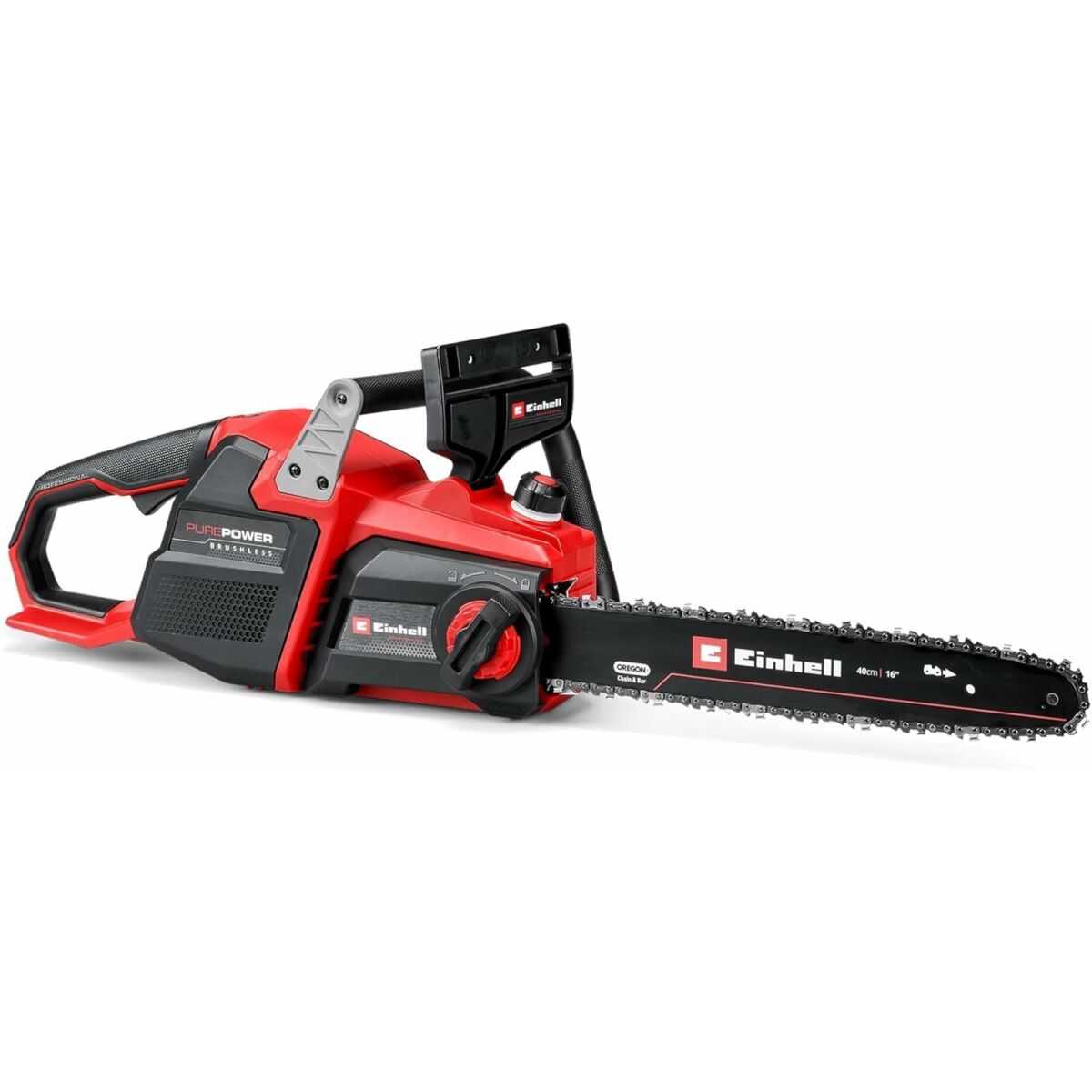 Az Einhell Professional GE-LC 36/40 Li-Solo akkumulátoros láncfűrész megbízható segítség közepes méretű és nagyobb fák ritkításához, illetve kivágásához, tűzifa aprításához, valamint gerendák elvágásához. Einhell szénkefe nélküli motorral. A szénkefe nélküli motorok nagyobb erőátvitelt és hosszabb üzemidőt garantálnak, mint a szénkefével gyártott társaik.