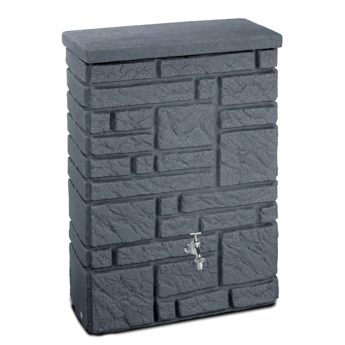 A 300 liter kapacitású Maurano esővízgyűjtő egy kőfal élethű mása. Beültethető tetejével minden évszakban a kert harmonikus része. A vízbevezetés a felső perem oldalánál van. A vízkinyerés egy ¾“- os nyíláson át lehetséges az esővízgyűjtő elején. Mindkét oldalán leeresztő nyílások vannak akár több esővízgyűjővel való összekötéséhez, vagy a fagyszezon előtti leeresztéshez.