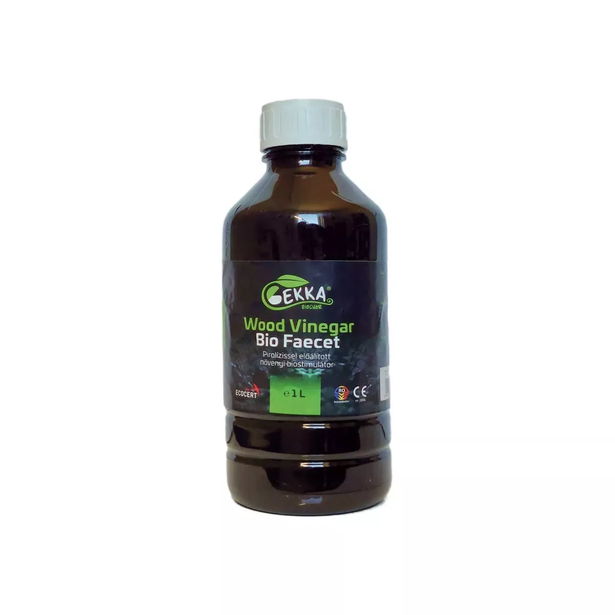 A Faecet, vagy más néven Wood Vinegar, növényi Biostimuláns és természetes rovarriasztó. A Faecet pirolízis során nyert organikus eredetű bio-desztillátum, amely kiemelkedően jótékony hatással van a növények növekedésére és a talaj egészségére. Ez a natúr oldat pirolignosavat és huminsavat tartalmaz, így különleges tápanyagforrás minden talajtípus számára, és emellett hatékony organikus rovar-riasztó és gombaölő. A GEKKA Faecet több mint 200 szerves anyagot tartalmaz.