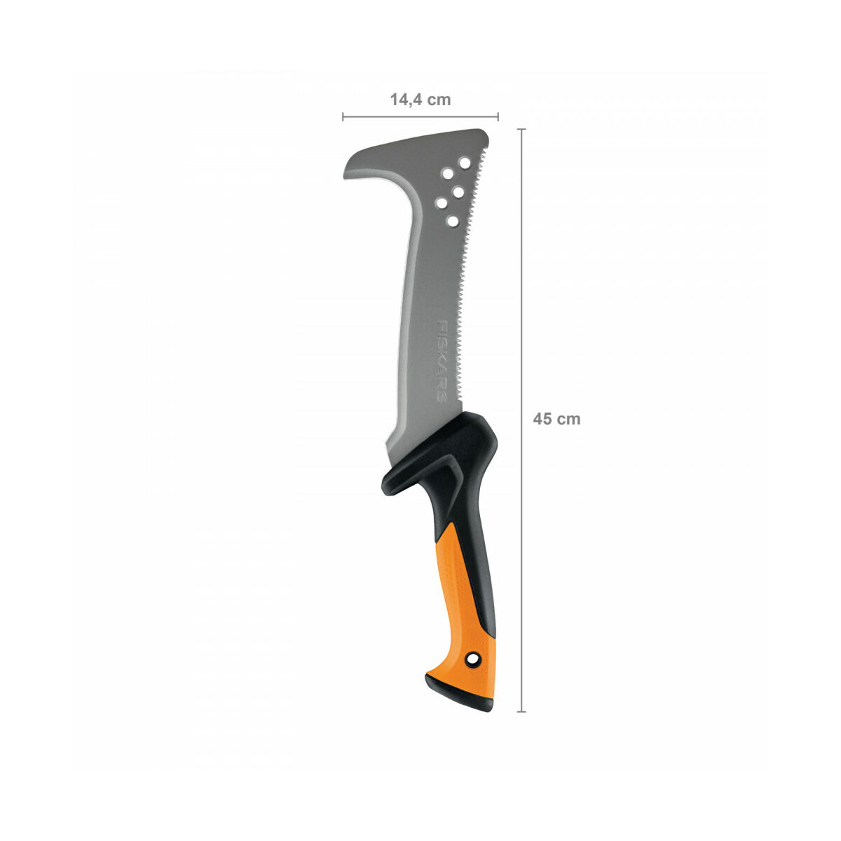 A gyors és intenzív igénybevételre tervezett Fiskars Solid™ fűrésszel kiegészített kampós bozótvágó nagyszerű megoldást kínál az udvaron és a kertben burjánzó növényzet féken tartására, különösen szűk helyeken. Az ultraéles, rozsdaálló penge sokféle feladatra készült, egyben felgyorsítja a munkát, mivel használata közben az egyik kéz szabadon maradhat. A kényelmes kialakítású markolat mintázata lehetővé teszi a precíz munkavégzést, stabil fogást biztosít, hogy maximális erővel vághasson. A bozótvágó tartalmaz egy éles, ívelt pengét húzóvágásokhoz és egy durva fűrészt a kemény ágak átvágásához.