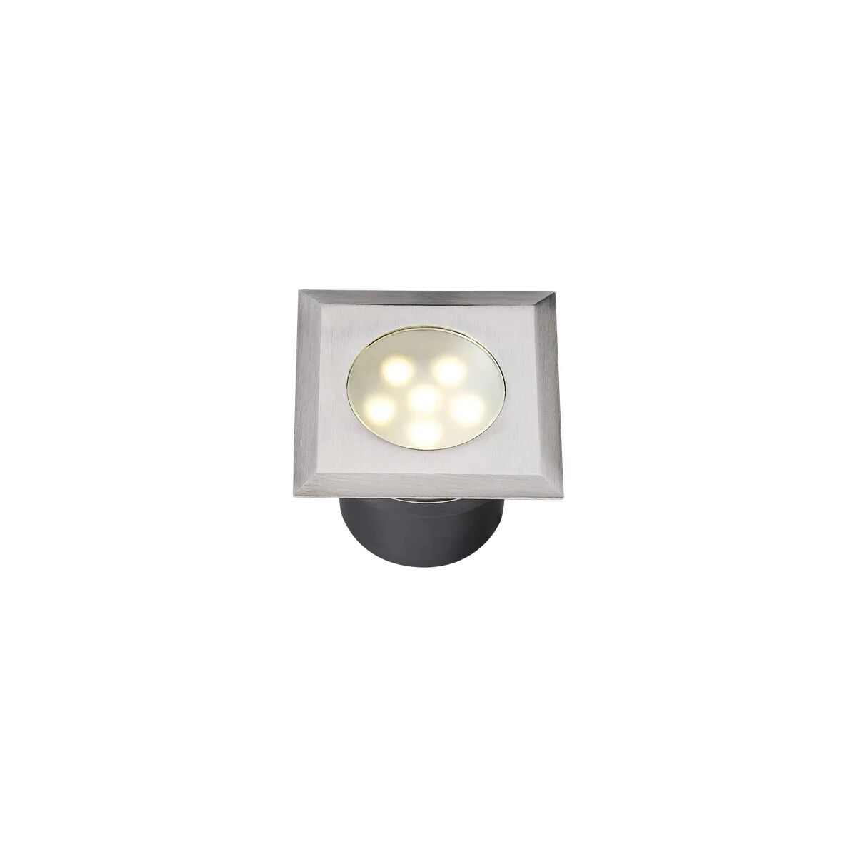 Ez a négyzet alakú fényszóró rozsdamentes acélból és műanyagból készül,meleg fehér fényforrással rendelkezik. A fényforrás 6 LED-et tartalmaz. A lámpa mérete 52 x 70 mm (szxx), a 12 voltos lámpa fogyasztása 1 W. Ideális padlóburkolathoz vagy térburkolathoz.