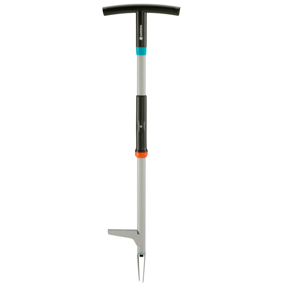 A praktikus GARDENA Gyomkiszúró kíméli a derekat, komfortosabbá teszi a hosszas gyomlálást és kíméli a derekat. A szerszám alján található praktikus rálépő segít behatolni a talajba. A különleges alakú fogantyú kényelmessé teszi és támogatja a forgó erőátvitelt.