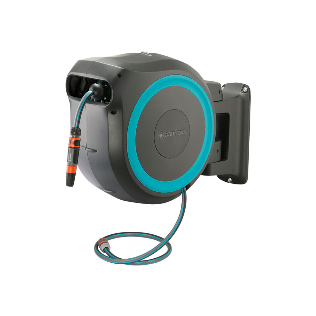- A praktikus fali konzolnak köszönhetően a tömlődob 180°-ban elforgatható, és észrevétlenül követi a kertben végzett mozdulataidat. Így maximális mozgásszabadsággal, könnyedén elvégezheted az öntözést, és a tömlő sem törik meg közben.