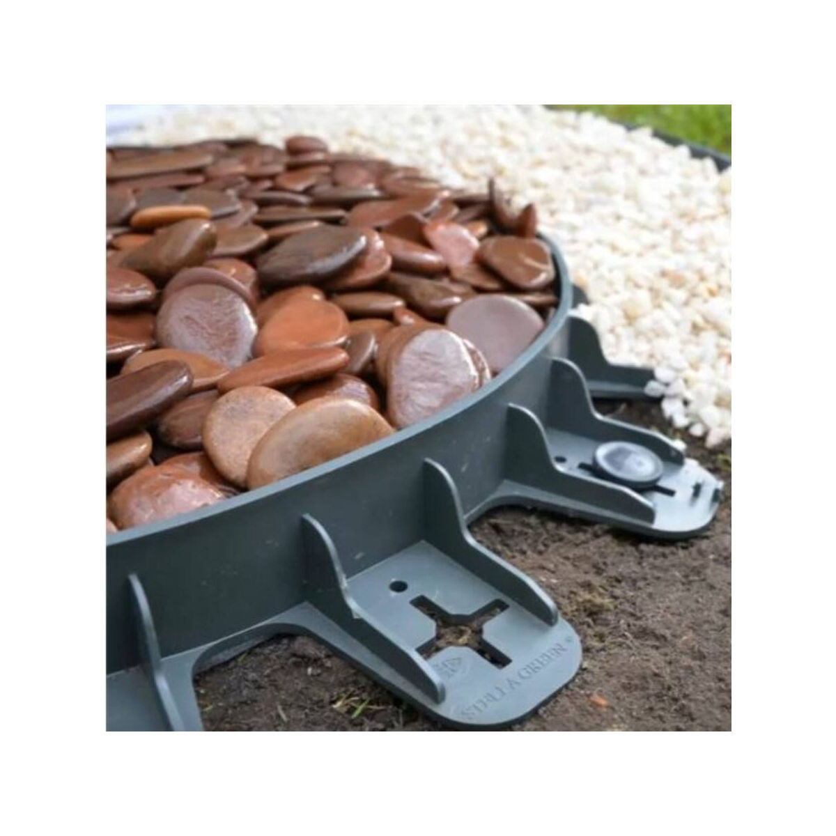 A szegély hajlítható, ezért nem csak egyenes szakaszra ajánlott. A szegély a kavicságyást stabilizálja. ( esőtől, széltől és egyéb fizikai ráhatástól ).