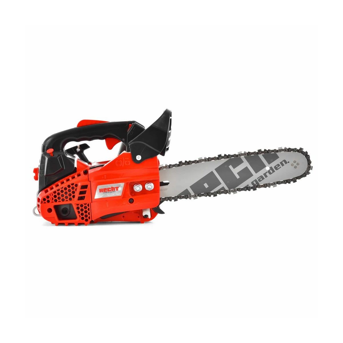 A felhasznált minőségi anyagoknak köszönhetően a fűrész jól kiegyensúlyozott. A beépített biztonsági elemek magától értetődőek, mint például a biztonsági láncfék, a rögzített fogtámasz vagy az övre akasztásra használható kampó. A fűrészt 30 cm hosszúságú, minőségi Hecht fűrészlánccal és 3/8", 1,3 mm-es láncmérettel szállítjuk. Méreteinek köszönhetően a lánc és a fűrészléc nélküli fűrész súlya mindössze 2,9 kg, a teljes fűrész súlya pedig mindössze 3,5 kg.