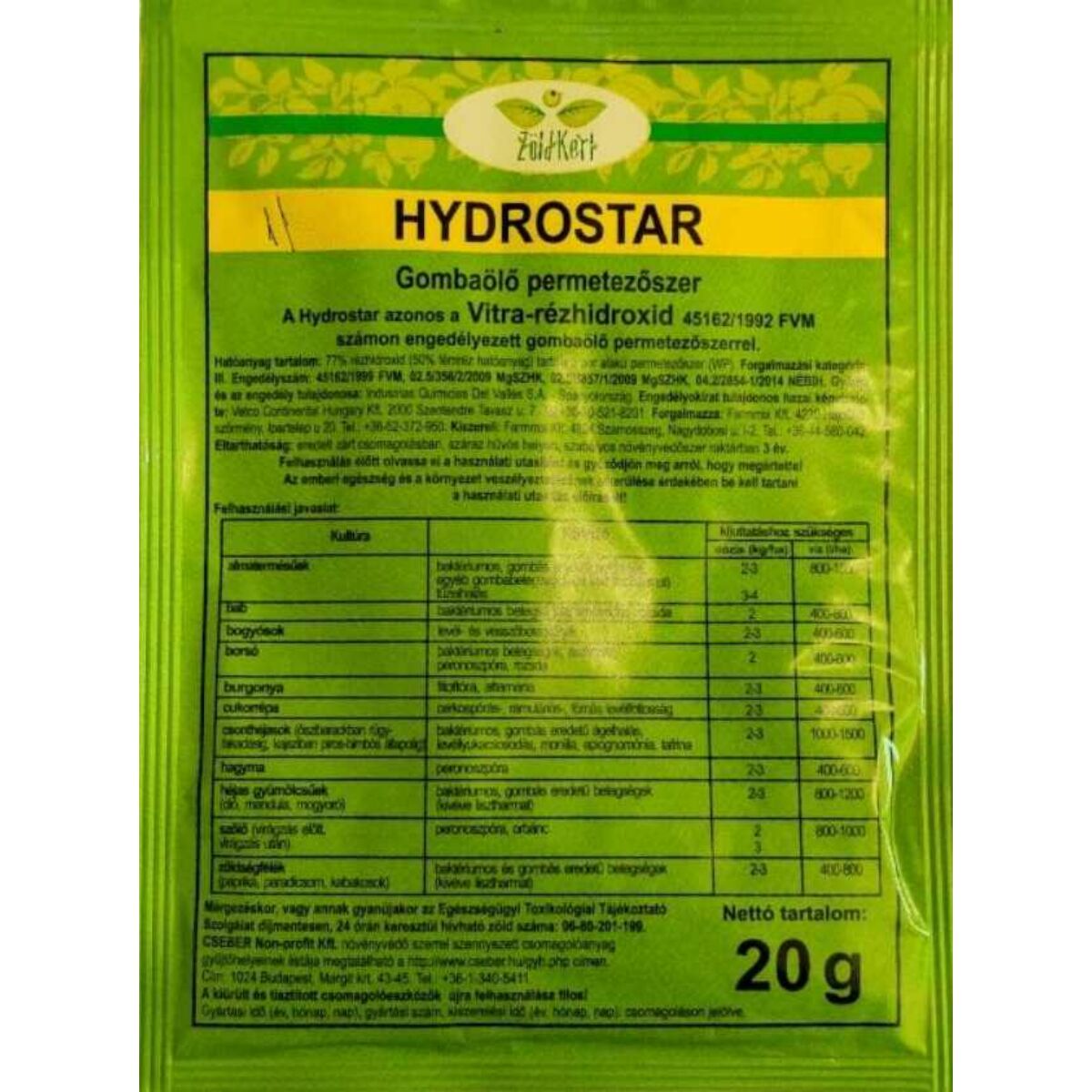 Hatóanyag:77% rézhidroxid (50% fémréz hatóanyag)