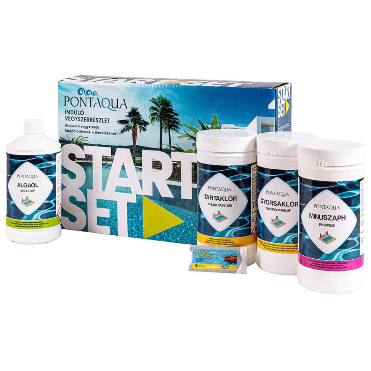 - A készlet tartalmaz minden olyan kiegészítőt ami a medencevíz tisztán tartásához szükséges