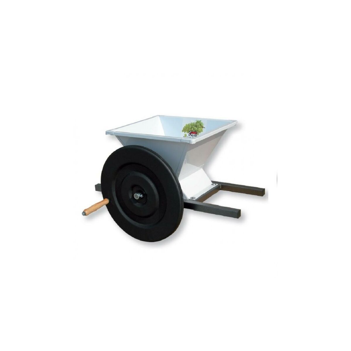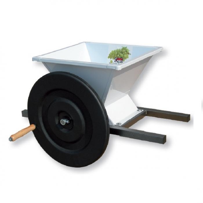 Olasz GRIFO Ltd által gyártott szőlő daráló. A daráló kézi hajtású és festett fém szerkezetű. A garat csavarral leszerelhető és könnyen tisztán tartható. Ajánlott a szőlő darálás során szüretelőkád használata.