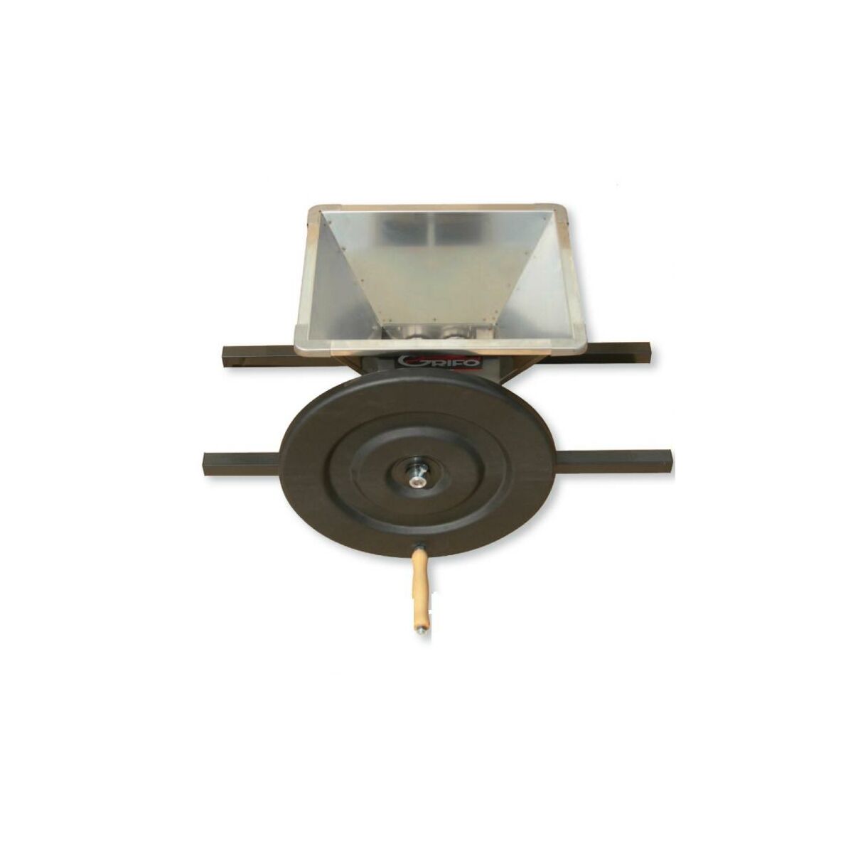 Olasz GRIFO Ltd által gyártott gyümölcsdaráló. A daráló mechanikus kézi hajtású és rozsdamentes szerkezetű. A garat csavarral leszerelhető és könnyen tisztán tartható. Az INOX szerkezetű darálógép feldarabolja, majd ledarálja a csonthéj nélküli gyümölcsöt. Ajánlott darálás során szüretelőkád használata.