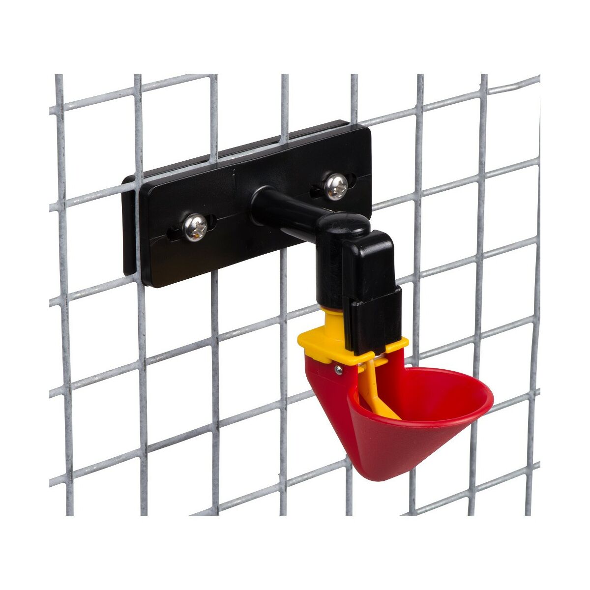 A tiszta víz folyamatosan automatikusan pótlódik, mivel a madarak csőrükkel a tálcában lévő sárga nyelvet ivás közben mozgatják, ezáltal a szelep a víz áramlását megnyitja, így saját magukat ellátják a szükséges friss ivóvízzel. Két csavarral rögzithető a ketrec rácsához.