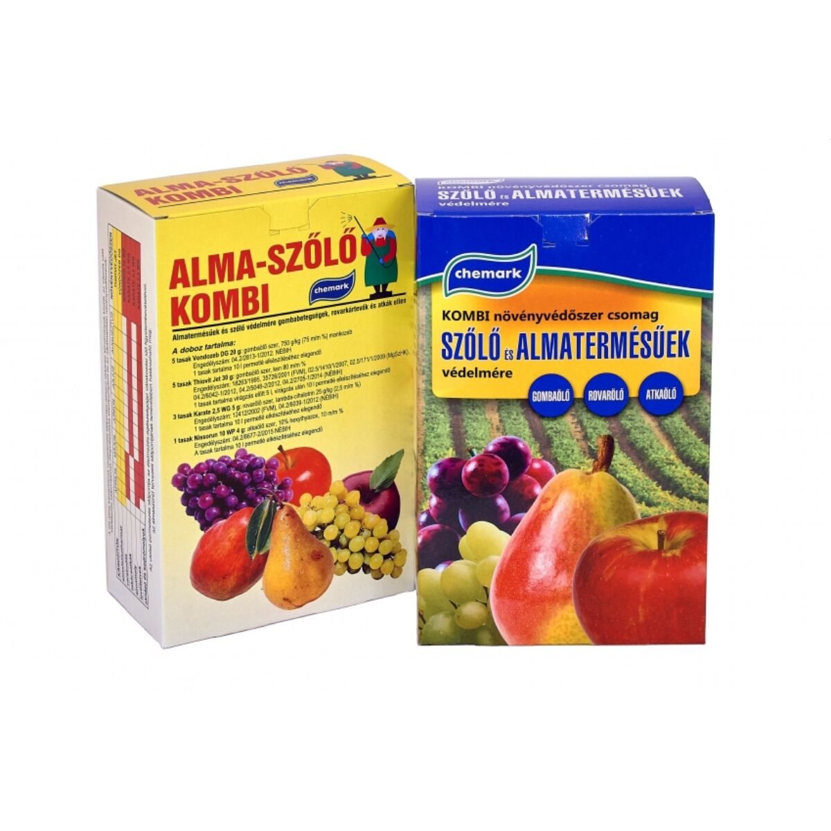 Kombinált készítmény az alma és szőlő betegségei, illetve kártevői ellen.
