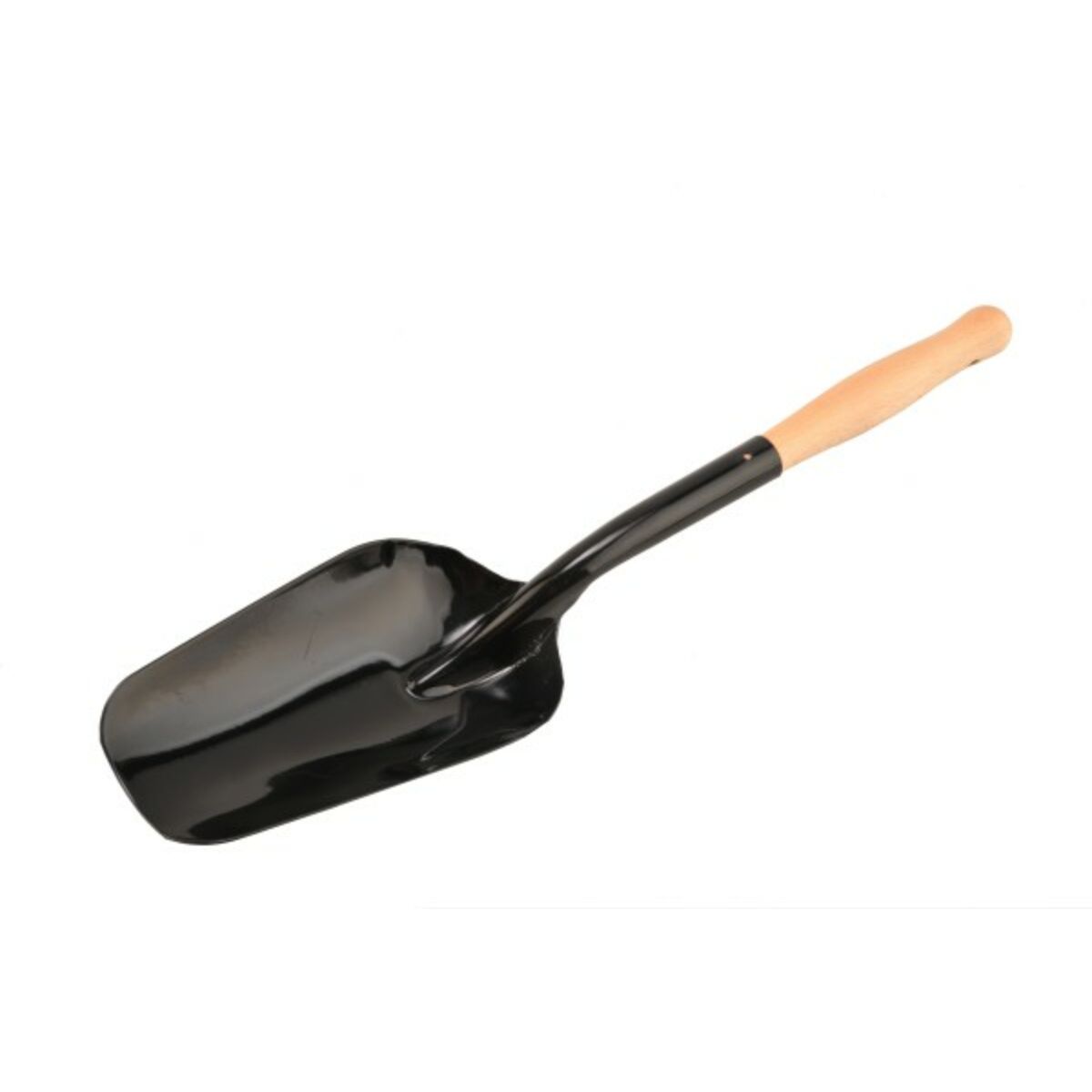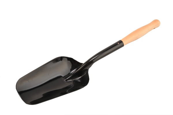 Esztergált, kényelmes fogású fa nyéllel, szépen alakított lapát résszel látták el ezt a mutatós szeneslapátot.