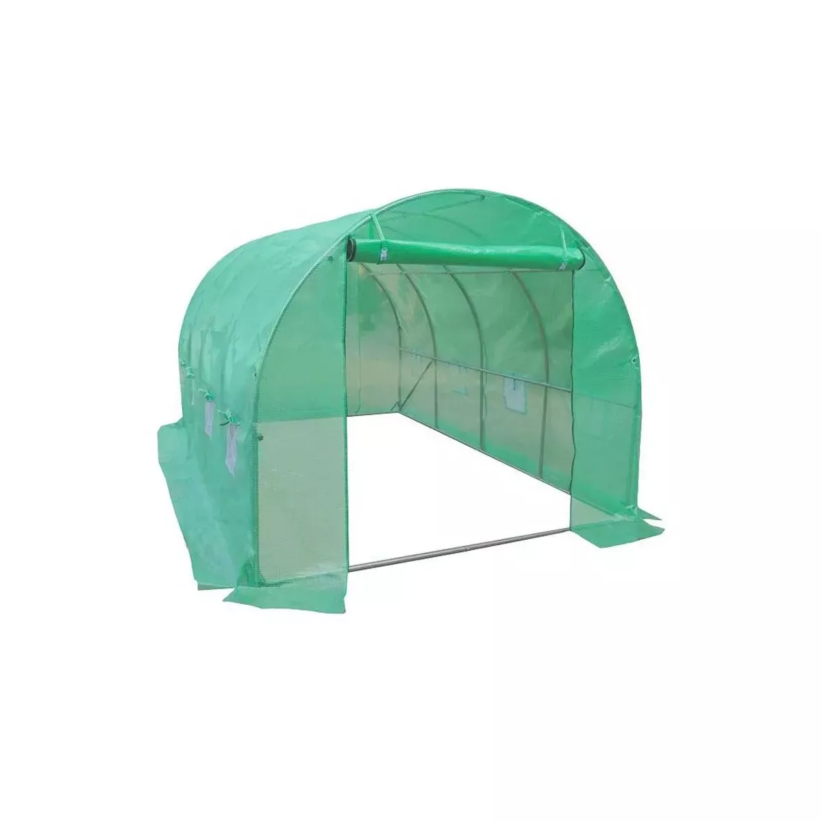 Szilárd szerkezete horganyzott acélból készül, ami rendkívül ellenálló a korrózióval szemben. Az oldalfalak vége lehetővé teszi, hogy talajjal borítsák vagy kövekkel nehezítsék, ami megakadályozza a fólia felgörbülését és befolyásolja a szerkezet stabilitását.