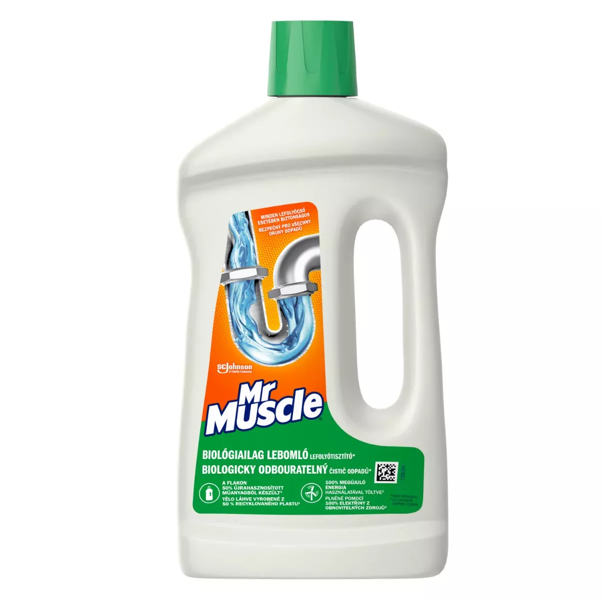 A Mr Muscle® biológiailag lebomló formulát kínál az enyhe lefolyási problémák enyhítésére, miközben szem előtt tartja a környezeti hatásokat. A biológiai lebonthatóság egy anyag azon képessége, hogy a vízben, levegőben és talajban előforduló, természetes mikroorganizmusok meg tudják emészteni vagy elfogyasztani. A teljes biológiai lebonthatóság egy anyag szén-dioxiddá és vízzé történő átalakulása. Biztonság: Biztonságos a csöveknek, nem korrozív a lefolyócsöveknek, fehérítő nélkül készült. A terméket 100% megújuló energiát felhasználó telephelyen töltötték.