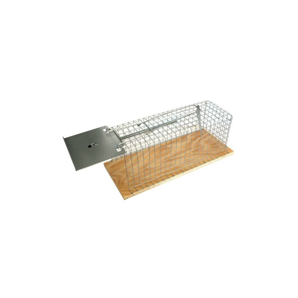 A nyitott kalitkába az egér bemászik a csalivéget, de ki nem tud kimászni, mivel a nyílás ajtaja a kioldóra helyezett csali mozgatásával bezáródik. A szerkezet élve elfogja a patkányt.