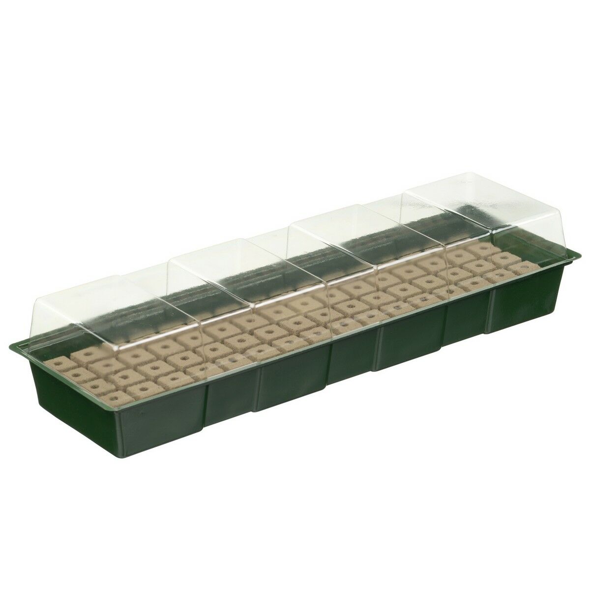 Rugalmas, egyenes aljú műanyagtálca egy (alapként szolgáló) habtálcával, amely 7 sorban soronként 11 rekeszt tartalmaz, és átlátszó fedéllel van ellátva. Különböző növényfajták magoncai számára alkalmas.