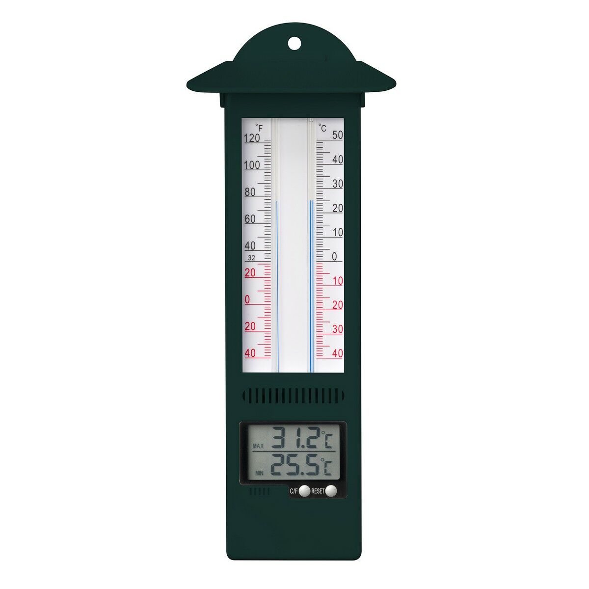 Alkoholalapú folyadékkal töltött. Jelzi a környezeti hőmérsékletet (mechanikus és digitális kijelzőn), és megjegyzi a szélsőséges (minimális és maximális) hőmérsékleteket. Két nyomógombbal rendelkezik a nullára történő visszaállításhoz és a Celsius