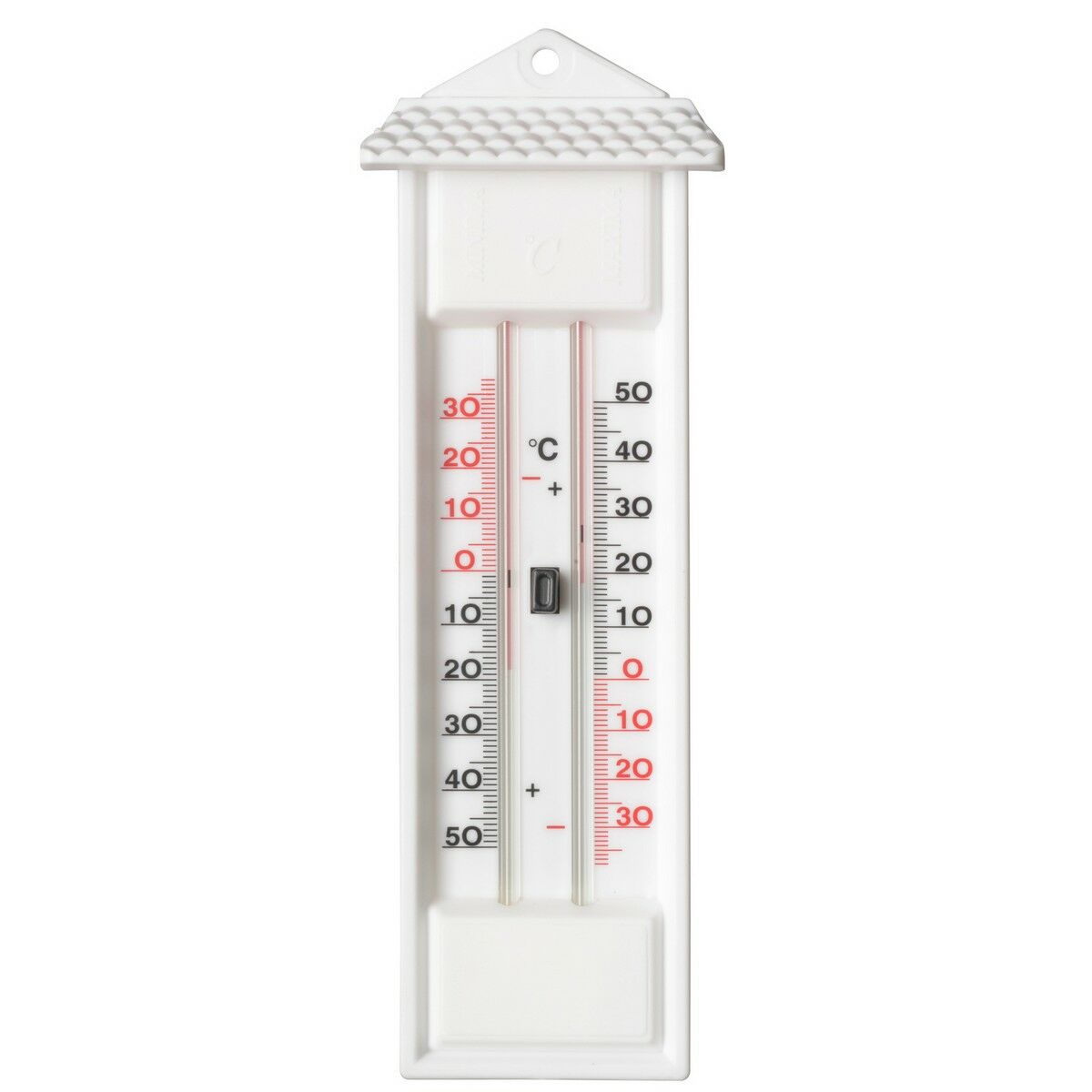 Alkoholalapú folyadékkal töltött. Jelzi a környezeti hőmérsékletet (mechanikus kijelzőn), és megjegyzi a szélsőséges (minimális és maximális) hőmérsékleteket. Nyomógombbal rendelkezik a nullára történő visszaállításhoz.