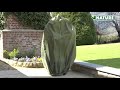 Nem szőtt polipropilénből, UV-álló, zöld, 70 g/m2 sűrűséggel. A takaró alján egy önzáró rendszerrel felszerelt feszítőzsinór és egy cipzár