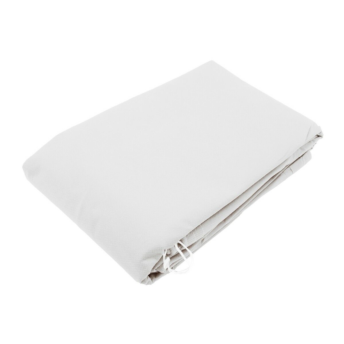 Nem szőtt polipropilénből, UV-álló, zöld, 70 g/m2 sűrűséggel. A takaró alján egy önzáró rendszerrel felszerelt feszítőzsinór és egy cipzár