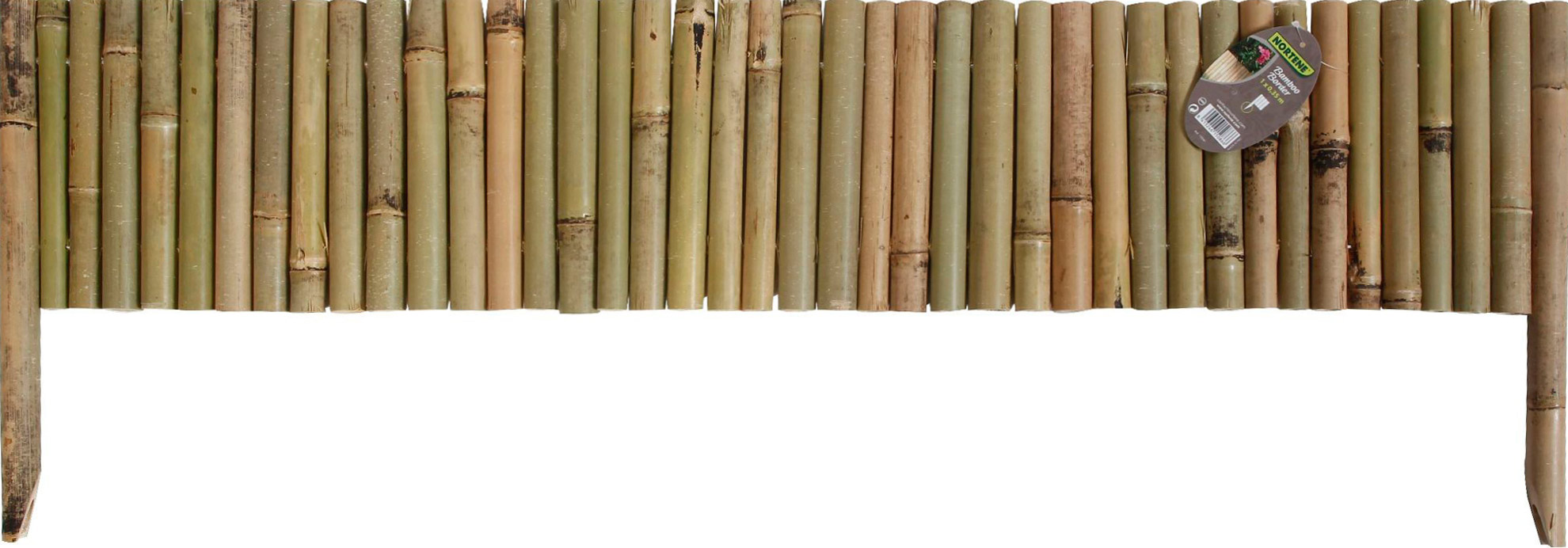 Természetes bambusz szegély a virágágyások, zöldségágyások, gyalogutak, gyepesített területek elkerítésére. A bambuszból készült részek horganyzott dróttal vannak összekapcsolva.