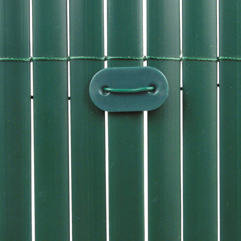 Használata egyszerű, minden 50 cm-enként. súlya: 0,05kg, színe: bambusz/zöld/fehér/fekete/szürke/barna anyaga PE műanyag lemez, 1,4mm-es huzal, 26db/csomag, UV álló, így a napsugárzásnak és az időjárás viszontagságainak is ellenáll.