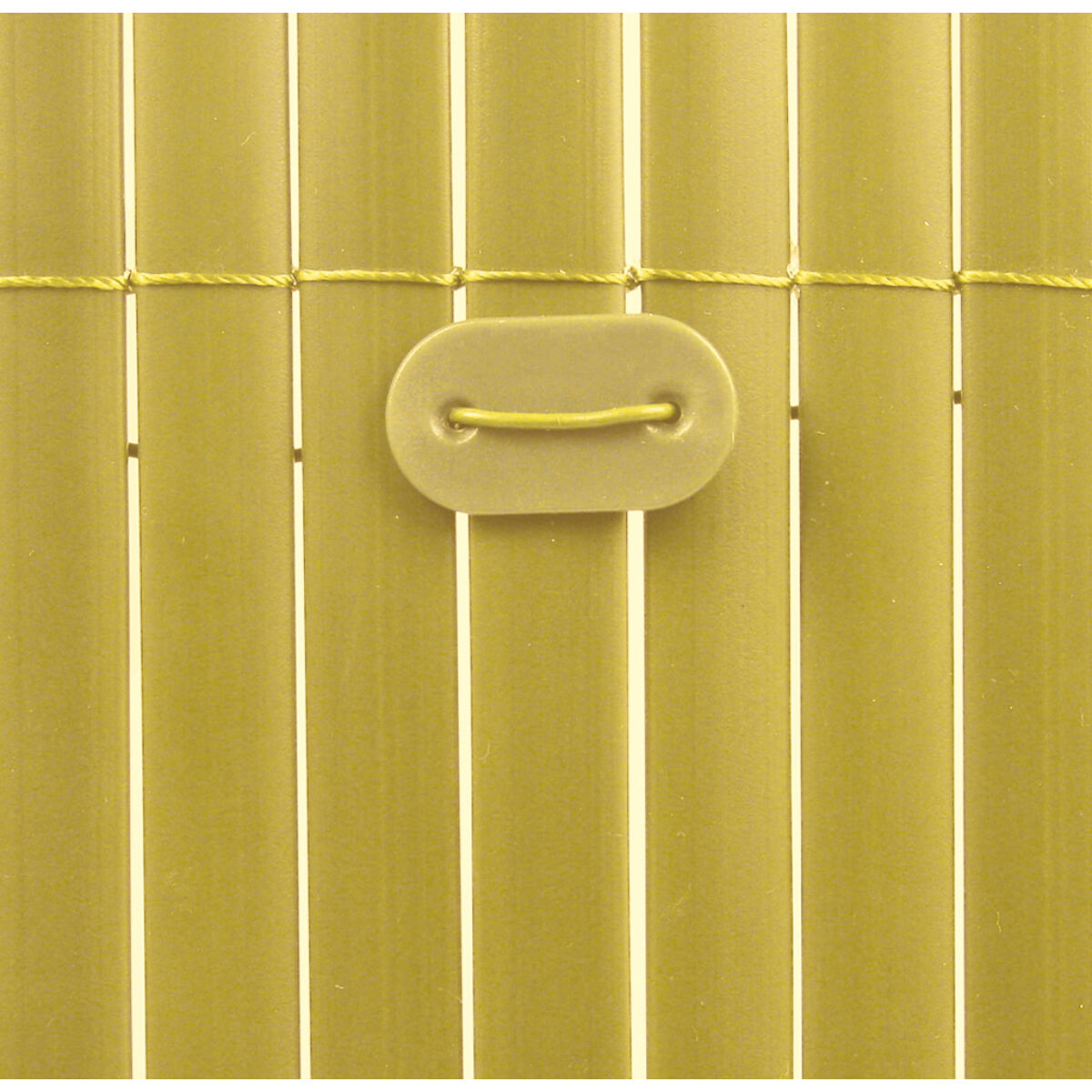 Használata egyszerű, minden 50 cm-enként. súlya: 0,05kg, színe: bambusz/zöld/fehér/fekete/szürke/barna anyaga PE műanyag lemez, 1,4mm-es huzal, 26db/csomag, UV álló, így a napsugárzásnak és az időjárás viszontagságainak is ellenáll.