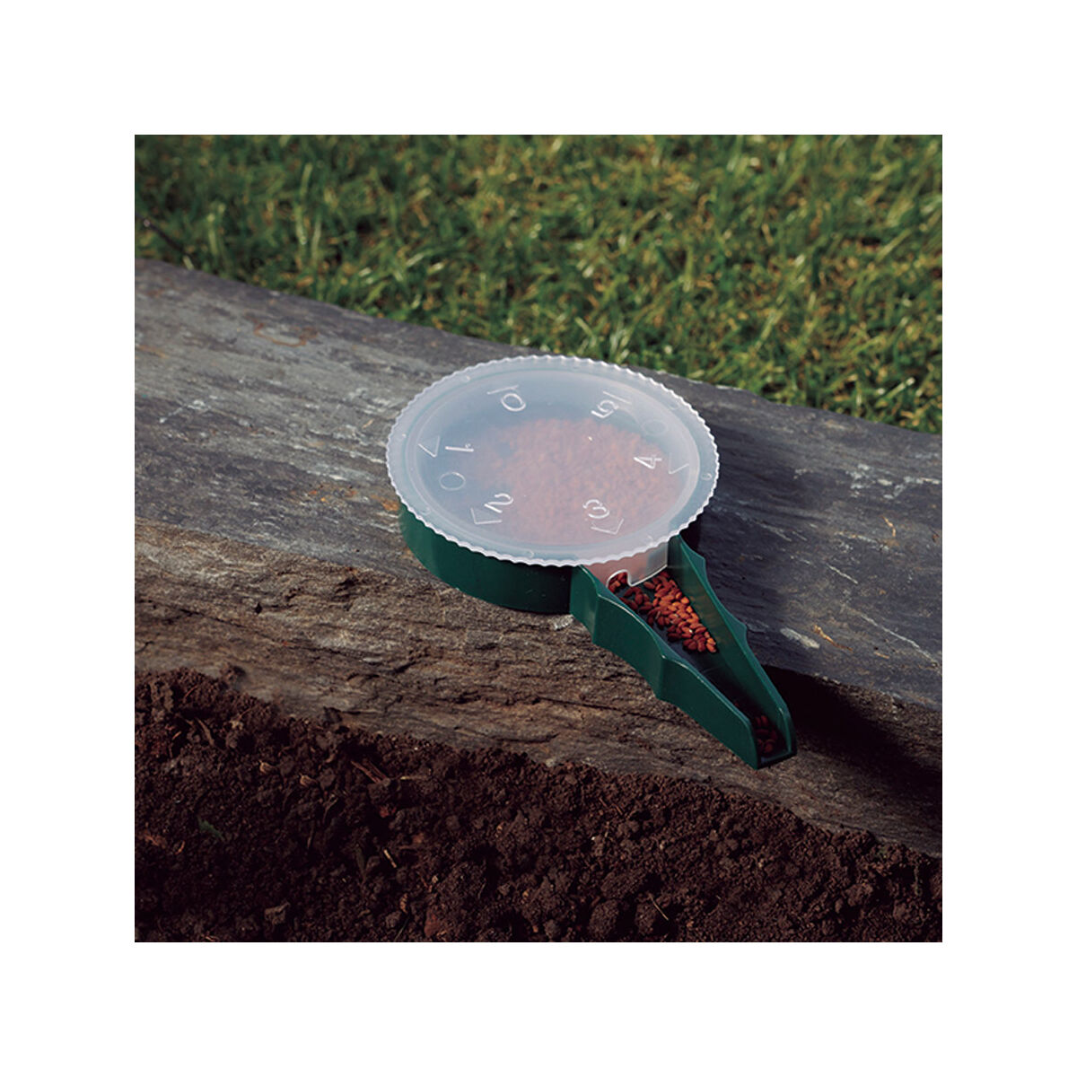 5 állítható pozíció a vetőmag átmérőjének megfelelően. Anyaga: PP, zöld színű, átlátszó kupakkal. Átmérő: 6 cm, európai gyártás.