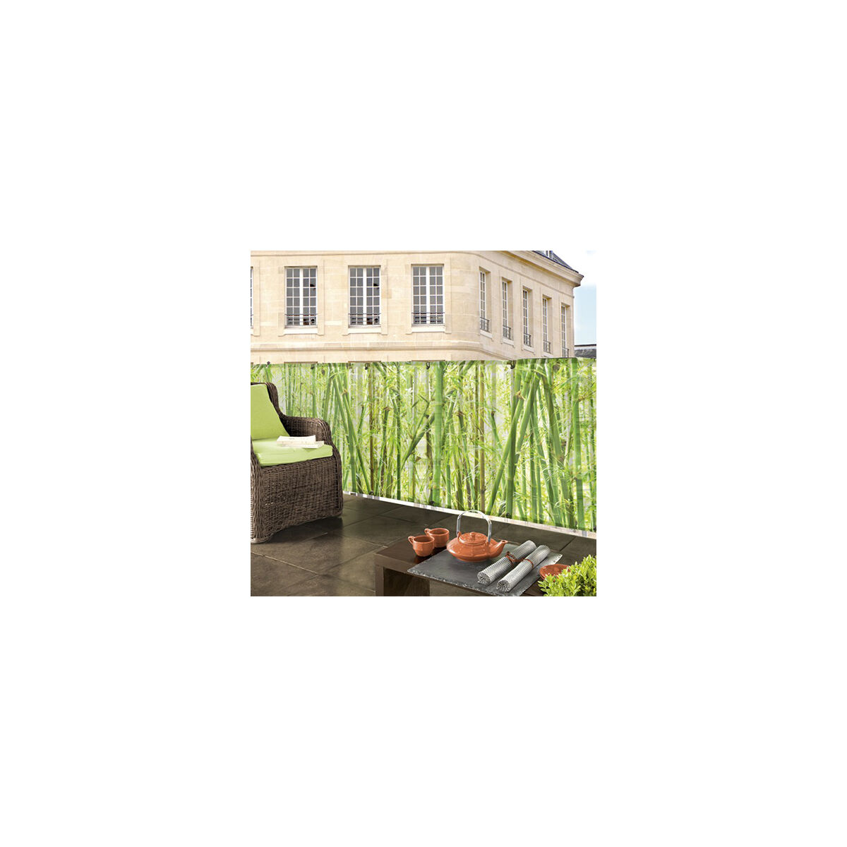 Egyoldalon festett árnyékoló bambuszmintával. Magas minőségű nyomtatás, természetes hatás. Poliészter bevonat, UV sugárzás ellen védett, sárgaréz fűzőlyukakkal.