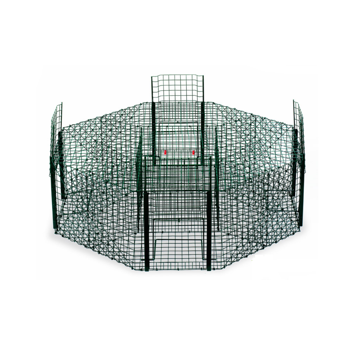 4 különálló fogórekesszel rendelkezik, így nem nevezhető tömegcsapdának. Minden fogókamra egyesével fog, így nem okozhatnak sérülést egymásnak a befogott állatok. Közepén található a csalirekesz. Nagyon erős drótfonatos hálóból készült.