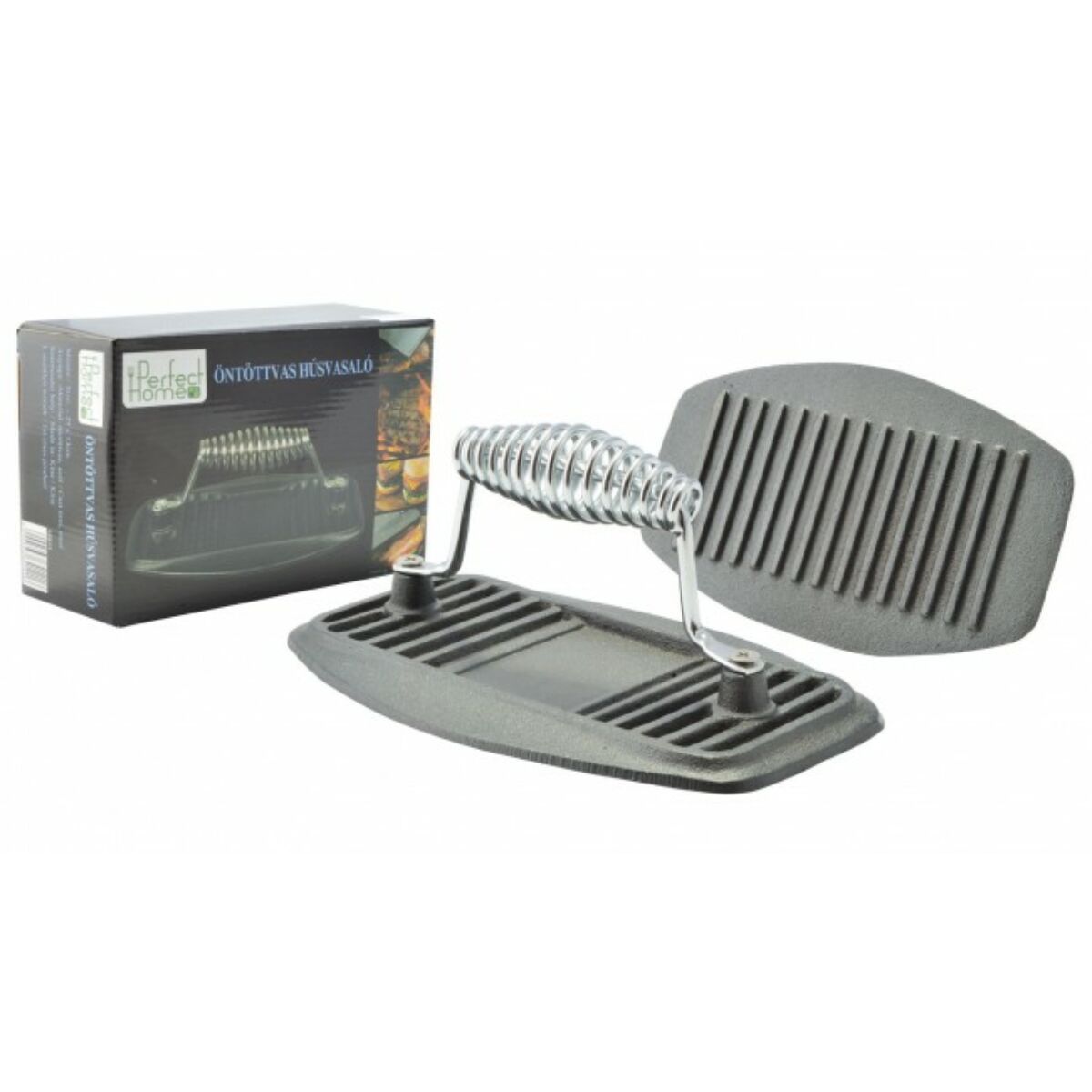 - A húsvasalót kültéri és beltéri sütögetésnél egyaránt használhatjuk. Használatával a húsok egyenletesebben és könnyebben átsülnek. A zsírosabb húsokból a nyomás hatására a zsír kipréselődik. Minden húsféléhez használható, akár halhoz, húspogácsához és szalonnához is. A recés felület a serpenyőben vagy tepsiben sütött húsoknak is grillezett hatást kölcsönöz. A húsvasalót kenje be kevés olajjal, hogy a tisztítása használat után egyszerűbb legyen. Helyezze a húsvasalót a grillen, serpenyőben vagy tepsiben sülő hússzeletre, és hagyja rajta pár percig. A spirálozott nyélnek köszönhetően a nyél nem forrósodik fel, de sütőkesztyű használata javasolt.