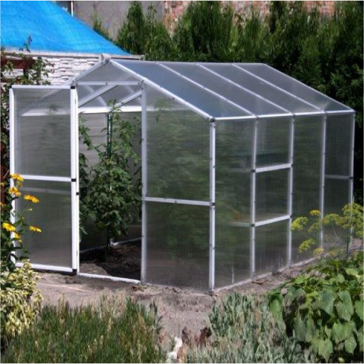Polikarbonát lemez: Lengyelországban gyártva - UV sugárzás ellen védett. Az üvegház minden eleme pontosan kivágott (nincs szükség az elemek levágására a tábláról - mindössze annyit kell tennie, hogy kész elemeket telepít).
