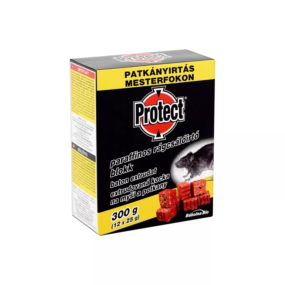 Felhasználásra kész 25g-os rágcsálóirtó blokk. A blokk keserű anyagot (denatónium-benzoát) tartalmaz, amely segít megelőzni a készítmény ember általi véletlen fogyasztását.