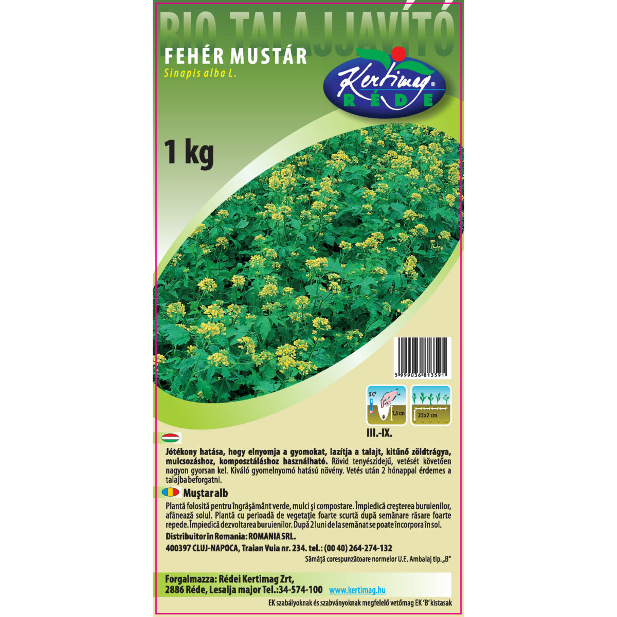 A rövid tenyészidejű mustár igen elterjedt növény. Magja kiváló fűszer. A vetést követően nagyon gyorsan kel. Állománya gátolja a talajeróziót, a bemosódó nitrogént a talajfelszín közelében visszatartja. Kiváló gyomelnyomó hatású növény. Vetés után 2 hónappal érdemes a talajba beforgatni. Ekkor gyökérrendszere is jelentős tömeget képvisel amely 50-70 cm mélységben szövi át a talajt. Jótékony.