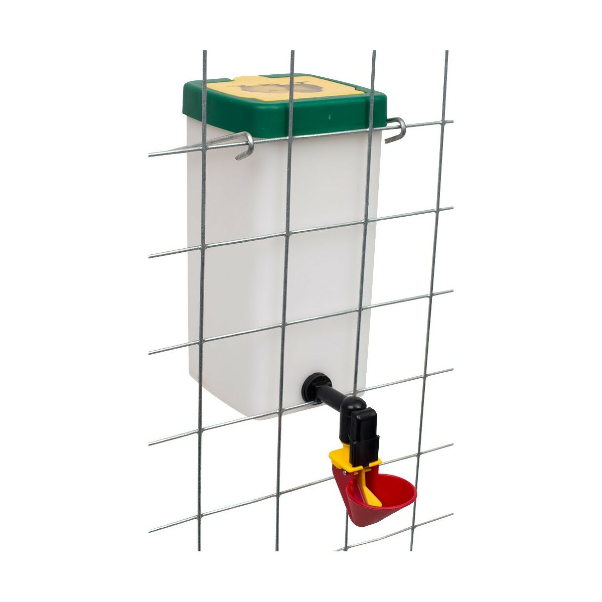 A fém rögzítő segítségével a tartály könnyen illeszthető a ketrec oldalára amibe könnyedén tudunk friss vizet adagolni