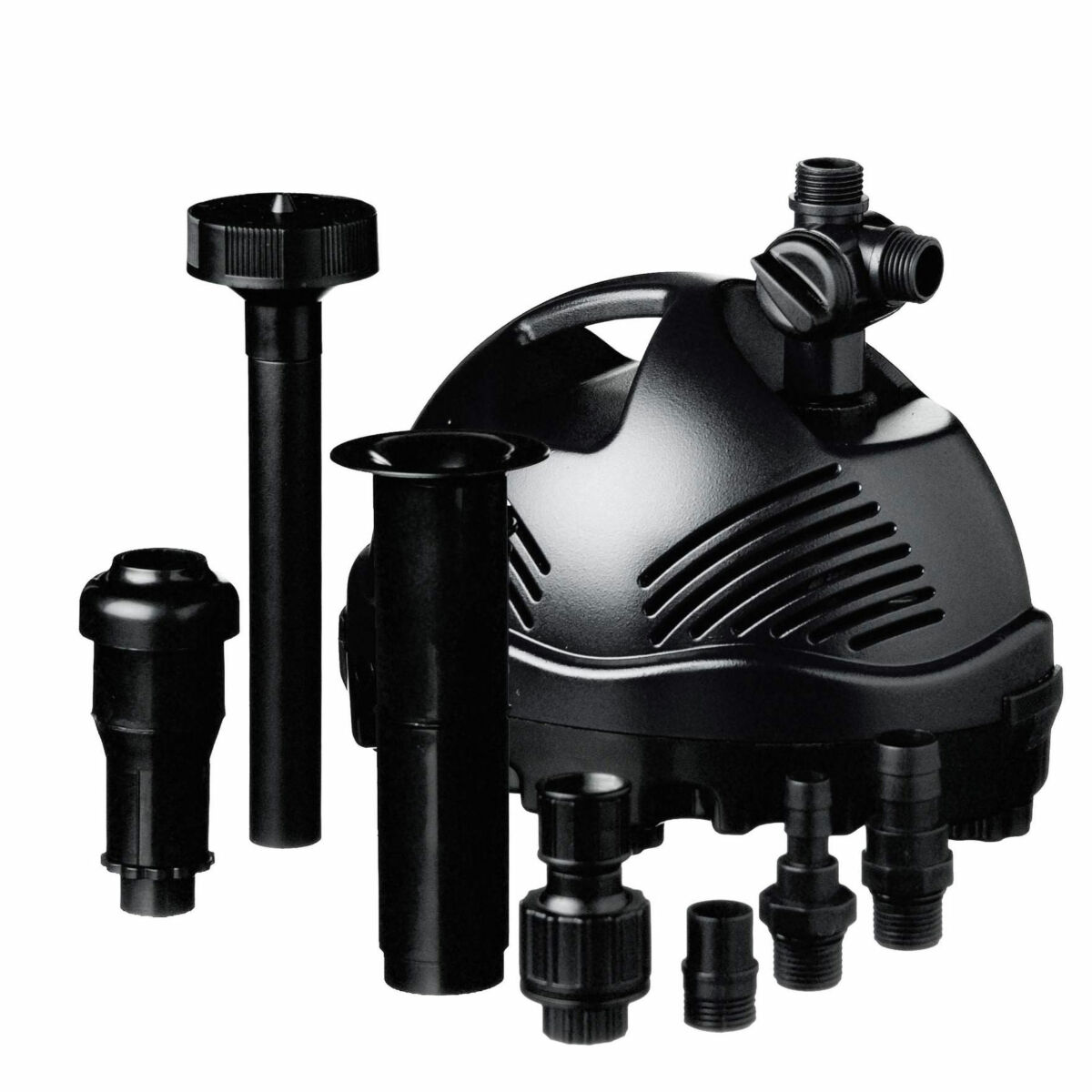 A szivattyúhoz tartozó vízmegosztó igénybevételével például működtethetjük egyidejűleg szökőkútként és használhatjuk szűrésre is. A mellékelt gömbcsatlakozóval felszerelhetjük a szórófejjel ellátott kihúzható csövet pontosan függőleges állásba.