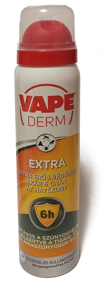 A Vape Derm Extra vérszívó ízeltlábúak távoltartására alkalmas. A bőrfelületre juttatott készítmény, a felvitel vastagságától függően, a vérszívó rovarokat 5-6 órán keresztül tartja távol. Használja kirándulás, sportolás, horgászat közben! Izzadás esetén is hatékony védelmet nyújt, nem ragad. Könnyed lágy permet, gyorsan felvihető a bőrre.