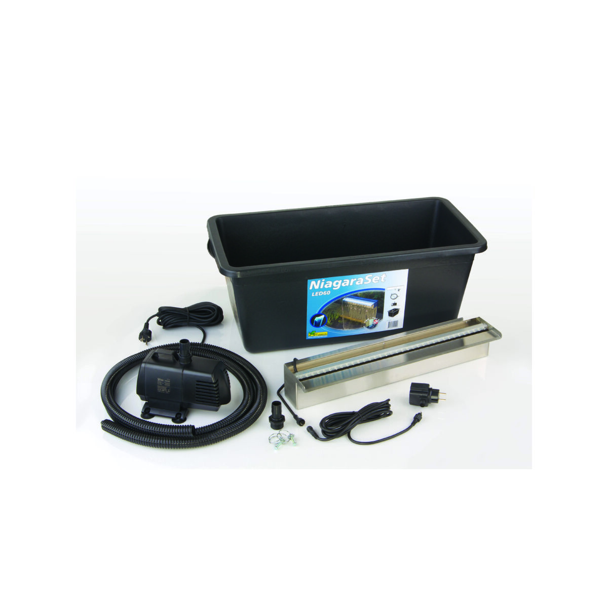 Méretek: 60 x 10 x 12,5 cm LED-ek száma: 35 Szivattyú: 3900 l / h Cső hossza: 2 m Szerelési magasság: 50 cm Tartály kapacitása: 65 L Niagara LED vízeséselem – UV sugárzásnak ellenálló, fagyálló, rozsdamentes acélból készített vízeséselem. Az Ubbink vízeséselemek alkalmasak arra, hogy egyéni vízesésünket saját elképzeléseink szerint állítsuk össze. Az acél elemeket –a természethű élmény érdekében– célszerű valamilyen természetes kőzettel beborítani vagy más módon elfedni. A Ubbink vízeséselemek és szökőkútmedencék kombinálásával, akár kerti tó nélkül is élvezhetjük kertünkben a folyó víz látványát. Az Ubbink vízesések és a patakok különleges hangulatot kölcsönöznek a kertnek. Nemcsak kihangsúlyozzák a kerti tó szépségét hanem hozzásegítenek az oxigéndús víz állandó körforgásához is. Az előregyártott acél vízeséselemekből igény szerint tetszőleges hosszúságú vízesés vagy patak is kialakítható.