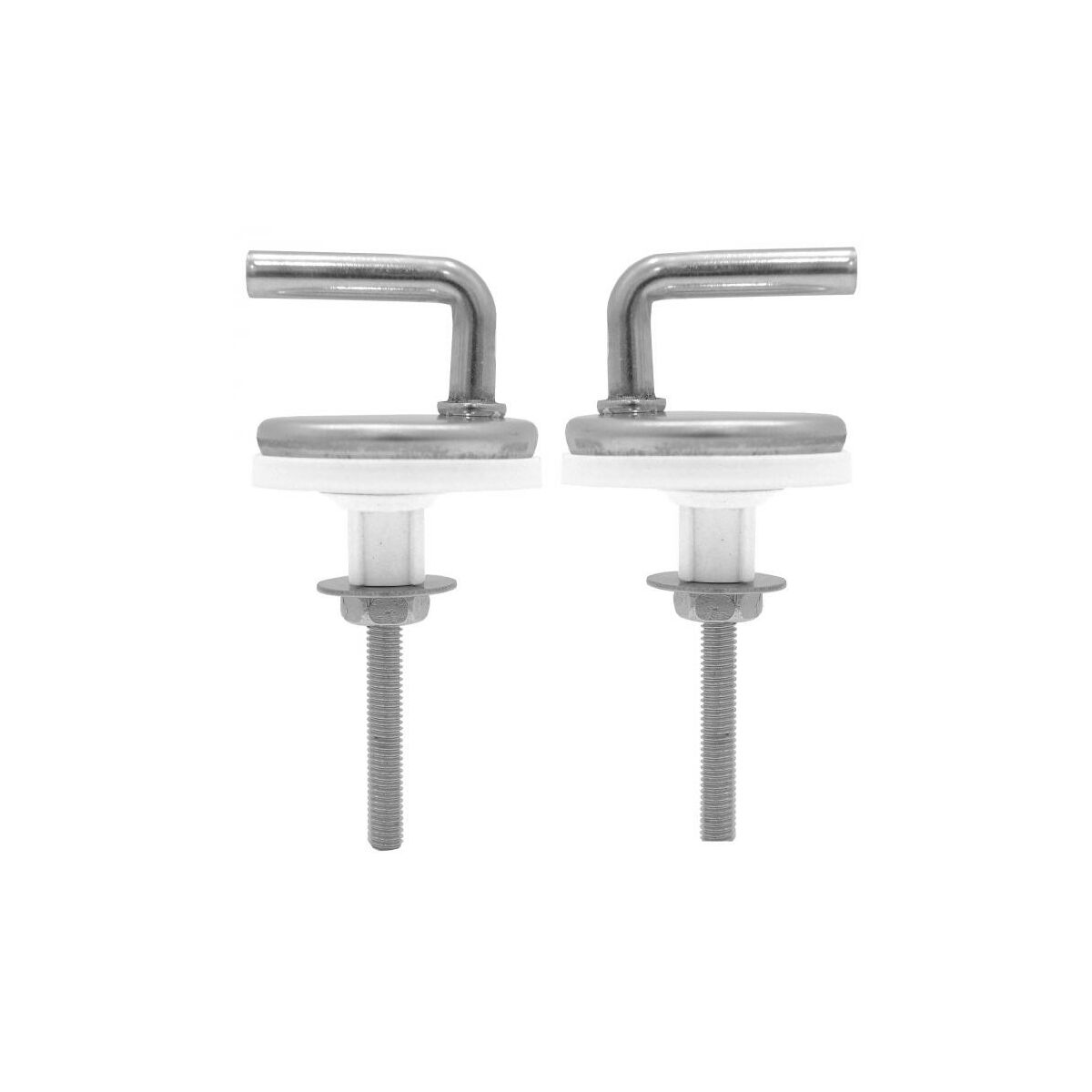 Fém WC zsanér szerelvény szett felhasználható, minden olyan WC tetőhöz, melynek kialakítása nem csavaros rögzítésű, hanem akasztós. A szerelés tartalmazza a zsanért és a rögzítéshez szükséges anyacsavarokat. Nálunk kínált WC tetőkhöz felszerelhető. A termék leírásánál vagy a termék fotónál fel van tüntetve.